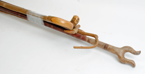 A COLLECTION OF VINTAGE WALKING STICKS WITH A SHOOTING STICKS,