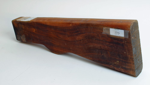 A WELL FIGURED WALNUT STOCK BLANK, partly done, measuring approx. 20 1/2in. x 6in. x 2 3/8in.