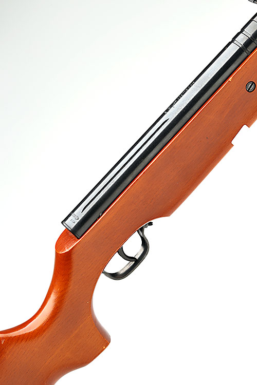 A .177 BREAK-BARREL AIR-RIFLE SIGNED HAENEL, MODEL '300', serial no. 327820, with 15 3/4in. sighted barrel, blued air-chamber and plain beech half-stock, appearing little used