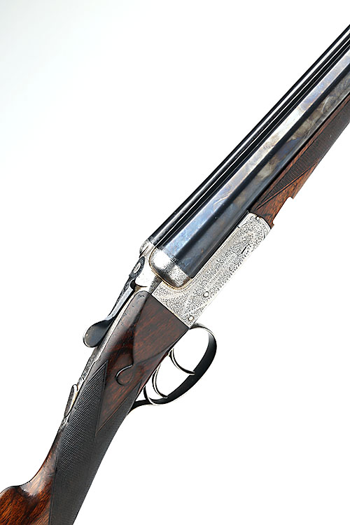 S. WRIGHT & SONS 12-BORE BOXLOCK EJECTOR, serial no. 5018, 25 3/4in. sleeved nitro barrels, 2 1/2in. chambers, bored approx. 1/4 and 1/2 choke, automatic safety, border and acanthus scroll engraving, bright finish, 14 1/2in. stock including 1 3/4in. wooden extension and rubber recoil pad, weight 6lb. 9oz.