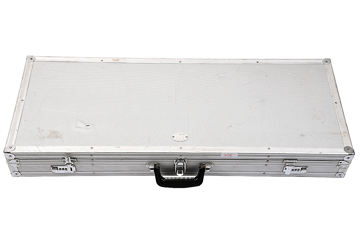 A FRANZEN ALUMINIUM TAKE-DOWN FLIGHT CASE, with 2 x combination locks (000 / 346) Right lock needs attention.