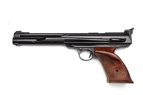 A CASED .177 SINGLE-STROKE PNEUMATIC AIR-PISTOL SIGNED DAISY, MODEL 747 POWERLINE, serial no. 8D01116,