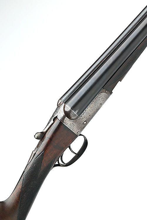 LINSLEY BROTHERS 12-BORE BOXLOCK EJECTOR, serial no. 2340, 28in. nitro barrels (pitted), rib engraved 'LINSLEY BROTHERS. LEEDS.', 2 1/2in. chambers, bored approx. true cyl. and 3/4 choke, automatic safety, border and acanthus scroll engraving, 14 3/4in. stock, weight 6lb. 11oz.