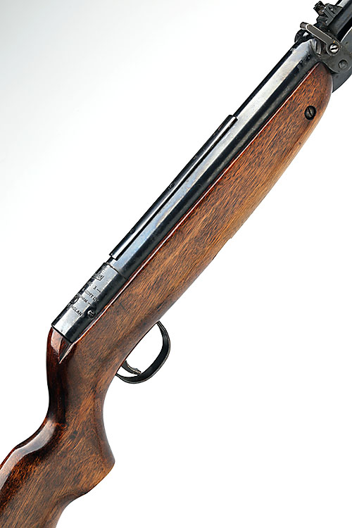 A .22 UNDER-LEVER AIR-RIFLE SIGNED WEBLEY & SCOTT, MODEL 'MK3', serial no. B90, with 18 1/2in. sighted barrel, blued air-chamber with parallel rail and walnut half-stock, collectors condition