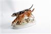 A FIGURINE OF TWO POINTER DOGS, made in Czechoslovakia and measuring 30cm x 14cm with a height of 20cm. The base displaying the Royal Dux pink triangle.