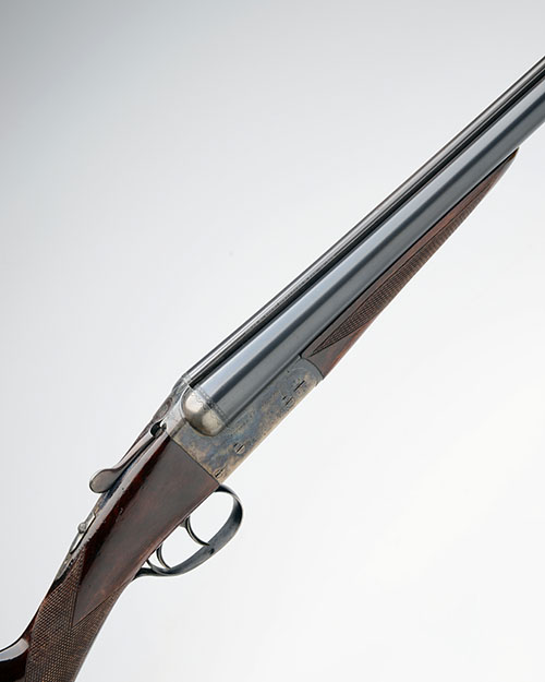 AYA 12-BORE 'NO.4' BOXLOCK EJECTOR, serial no. 564095, 26in. nitro barrels, 2 3/4in. chambers, bored approx. 1/4 and 3/4 choke, automatic safety, border and partial scroll engraving retaining much original colour hardening and finish, 14 3/4in. straight hand stock