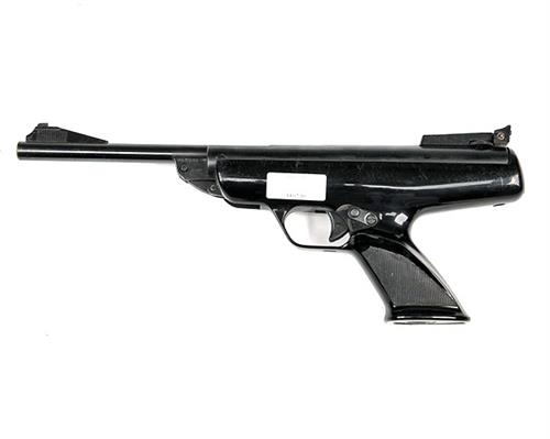 A .177 BREAK-BARREL AIR-PISTOL SIGNED BSA, MODEL 'SCORPION', serial no. PA11028, with 7 3/4in. sighted barrel, dove-tailed air-chamber, black plastic pistol-grip half-stock and side safe, missing cocking aid.