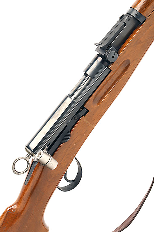 25in. nitro barrel, protected block-mounted fore-sight, 50 m tangent rear-sight , leather sling