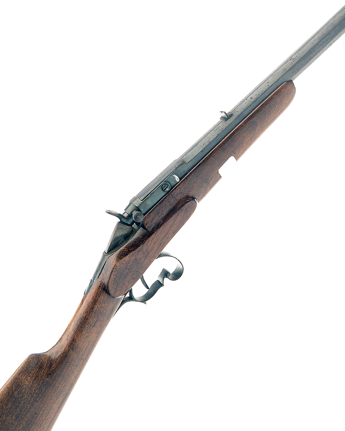 ** AN F.A.C. BELGIAN .22 FLOBERT (SMOOTHBORE) SINGLE-SHOT FLIP-UP BREECH HAMMER RIFLE, serial no. 5453, 23 1/2in. black powder only octagonal barrel, open rear sight, dove-tailed blade fore-sight, 13 3/4in. stock