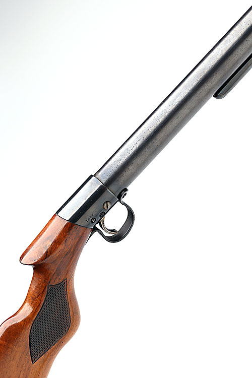 for 1923, with slightly shortened 17 3/4in. barrel, rotating loading tap, plain air-chamber, walnut butt-stock and push-button under-lever, refinished