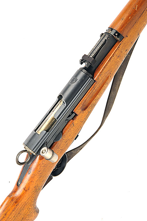 25 1/4in. nitro barrel (bore measuring 7.52 / 7.52), block-mounted fore-sight, tangent rear-sight graduated to 1500 meters, 6 round detachable magazine with matching serial no.