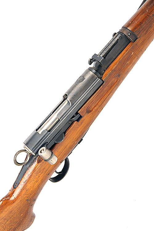 25 1/4in. nitro barrel (bore measuring 7.52 / 7.52), block-mounted fore-sight, tangent rear-sight graduated to 1500 meters, 6 round detachable magazine with matching serial no.