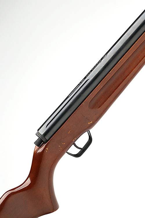 with sighted 20 3/4in. barrel, blued air-chamber with telescopic sight rails, rear-mounted safe and beech half-stock