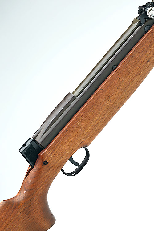 produced solely for fairgrounds and galleries, with fixed 18in. barrel, bolt-action cocking, beech three-quarter stock with shot-counters built into the left hand side, constant air feed aperture beneath the fore-end and 125 shot under-barrel magazine, untested