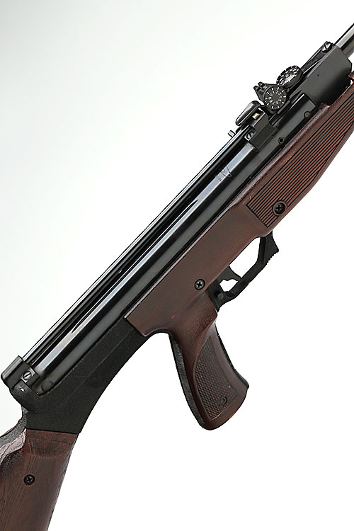 sold as the 'Paratrooper Repeater' in the UK, with blued 18in. barrel, open sights, magazine tube mounted along the top of the air-chamber, plastic butt-stock and fore-end with black crackle finished frame, collectors condition