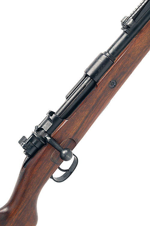 24in. nitro barrel (re-proved 2016), ramp-mounted blade fore-sight, tangent rear-sight graduated to 2000 meters, receiver marked '337 1940' with Nazi proof marks, manual bolt safety, detachable floorplate, steel buttplate,