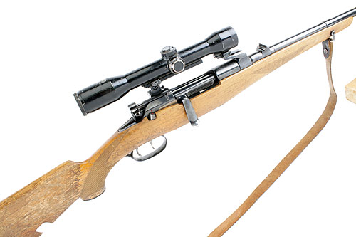23 1/2in. nitro barrel, ramp-mounted bead fore-sight, folding leaf rear-sight, receiver ring with 'MADE IN AUSTRIA ORIGINAL MANNLICHER SCHOENAUER MoD. 1950 KAL. 8X60 MAGN.' fitted with a Hensoldt Wetzlar Diatal-d 4x32 telescopic sight, with quickly release mounts, manual safety, turn-down butterknife bolt, detachable floorplate, 13in. pistolgrip stock (including ventilated recoil pad), leather sling
