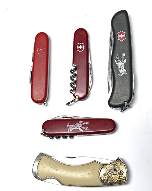 A QUANTITY OF FOLDING POCKET KNIVES, including Victorinox and Franklyn Mint (5)