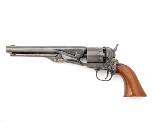 A REPRODUCTION .36 PERCUSSION REVOLVER SIGNED UBERTI, MODEL 'COLT'S 1861 NAVY', serial no. 4789, with blued 7 1/2in. barrel, blued cylinder, colour-hardened open frame and walnut grips