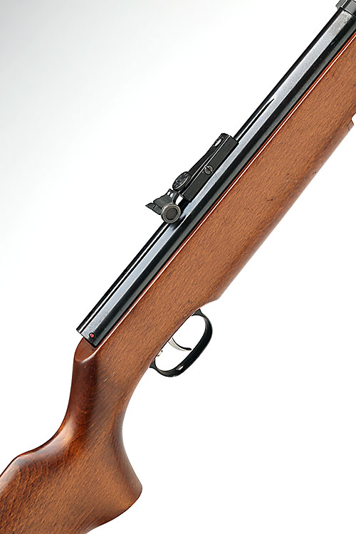 A .22 UNDER-LEVER AIR-RIFLE SIGNED WEIHRAUCH, MODEL 'HW57', serial no. 1582088, with blued 14 1/2in. barrel, open sights, pop-up loading aperture, rear safety catch and beech half-stock, appearing little used