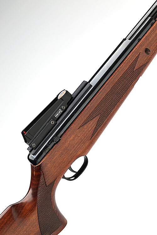 A .22 BREAK-BARREL AIR-RIFLE SIGNED BSA, MODEL LIGHTNING XL, serial no. S48894, with 14 1/2in. moderated barrel, blued air-chamber and chequered beech half-stock, complete with a WEBLEY 'SPEED-POINT' reflex sight