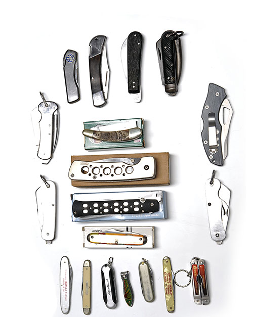 A COLD STEEL TI-LITE INCLUDED IN A LARGE QUANTITY OF POCKET AND UTILITY KNIVES (18)