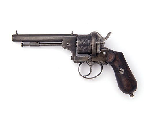 A 9mm PINFIRE SIX-SHOT DOUBLE-ACTION REVOLVER SIGNED 'ARENDT? BREVETE A LIEGE', serial no. 6402,