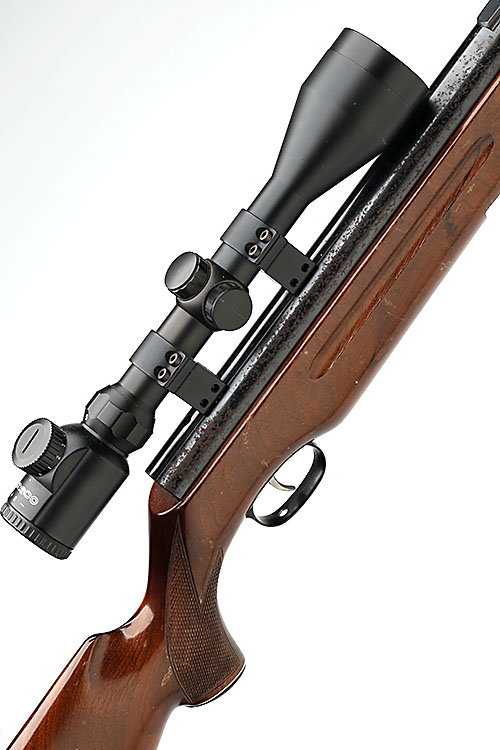 A ,22 BREAK-BARREL AIR-RIFLE SIGNED 'WEIHRAUCH', MODEL 'HW35E', serial no. 691017, with 22in. barrel (open sights removed and missing), blued air-chamber, walnut half-stock (finish worn) and fitted with a 3-9x50 telescopic sight