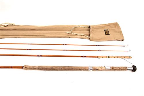 THREE FISHING RODS, comprising of a J.S. SHARPE 3-piece split cane rod, a Normark Silver Medallion spinning rod, a Normark Black medallion