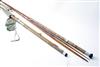 A COLLECTION OF THREE VINTAGE SLIT CANE FISHING RODS, comprising of a Hardy's two piece spinning rod, two salmon fly rods