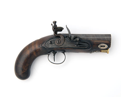 A 22-BORE FLINTLOCK TRAVELLING-PISTOL SIGNED D. KILPATRICK, no visible serial number,