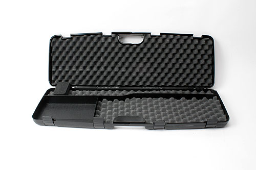 A TAKE-DOWN HARD PLASTIC OVER AND UNDER SINGLE GUNCASE