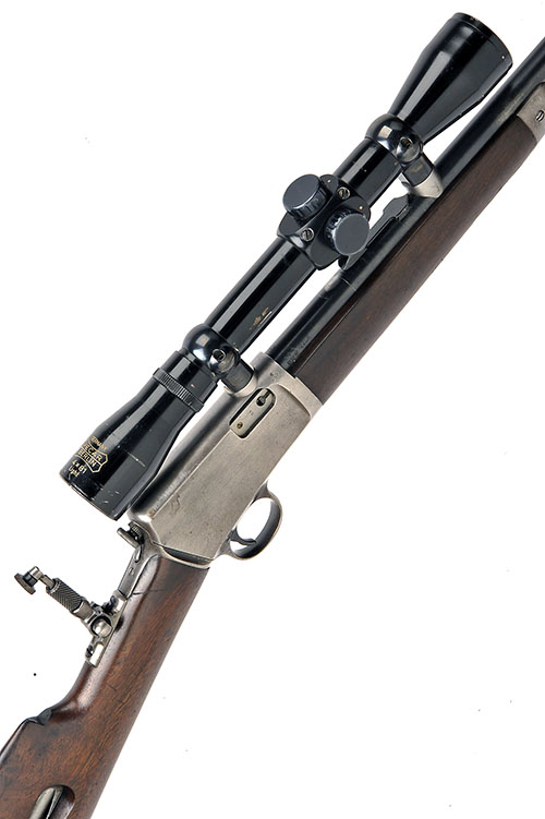 WINCHESTER .22 L.R. 'MODEL 1903' SELF-LOADING SPORTING RIFLE, serial no. 78937, 20in. nitro barrel, bead fore-sight, fitted with a (bent) Pecar Berlin 4x81 telescopic sight, tang rear folding peep-sight, manual safety, stock magazine, steel buttplate, sling swivels