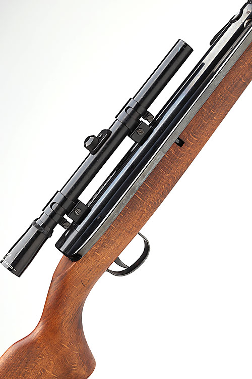 A .22 SIDE-LEVER AIR-RIFLE SIGNED WEBLEY & SCOTT, MODEL 'OSPREY', serial no. 13993 circa 1979, with blued heavy 19in. barrel with fore-sight from a 'Supertarget' model, adjustable rear-sight, tap loading breech, plain air-chamber and beech half-stock; COMPLETE WITH a period 'WEBLEY' 4x15 telescopic sight