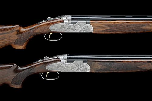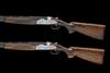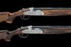 30in. nitro barrels with 6mm ventilated matt top-ribs gold-inlaid '1' and '2' at the breech ends, 3in. chambers, bored approx. imp. cyl. and 1/2 choke (both), hold-open toplevers, automatic safeties with integral barrel selector switches, gold-washed single triggers, foliate scroll engraving, the decorative sideplates engraved with game scenes, brushed finish, 14 1/2in. pistolgrip stocks including wooden Beretta buttplates, weight 7lb. 3oz. (both), in their makers universal double guncase