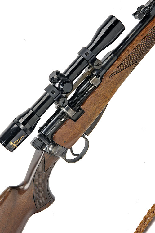 LEE ENFIELD .303 'SHT. L.E. III' BOLT-MAGAZINE SPORTERISED SERVICE RIFLE, serial no. 2765, 22in. nitro barrel, fore-sight missing, tangent rear-sight, fitted with a B.S.A. 4X32 telescopic sight, manual safety, detachable magazine, leather sling