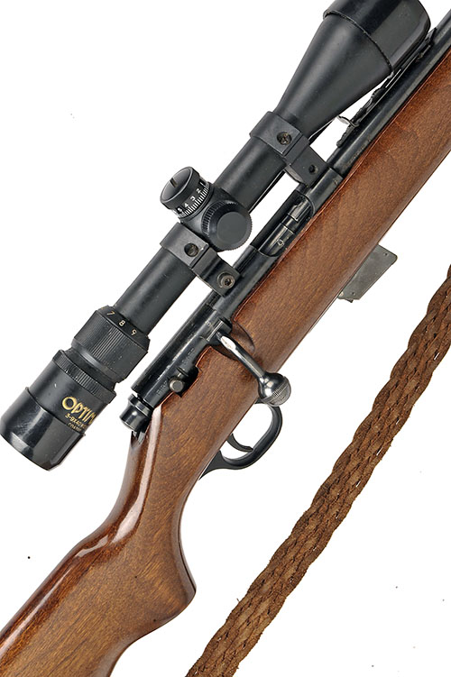 THE MARLIN FIREARMS CO. .22 S.L. or L.R. 'MODEL 25' BOLT-MAGAZINE SPORTING RIFLE, serial no. 13690899, 22in. nitro barrel, threaded for sound moderator, ramp-mounted blade fore-sight, leaf rear-sight, fitted with a Optima 3=9x40 telescopic sight, manual safety, detachable magazine, leather sling