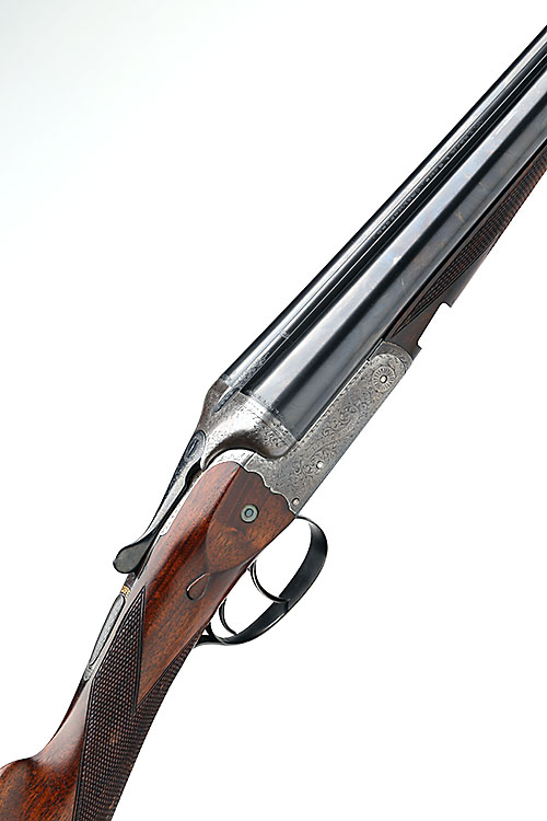 W. LEECH & SONS 12-BORE BOXLOCK EJECTOR, serial no. 4300, 28in. sleeved nitro barrels, rib engraved 'W. LEECH & SONS. CHELMSFORD.', 2 3/4in. chambers, bored approx. imp. cyl. and 1/4 choke, scroll-back treble-grip action, automatic safety, border and partial scroll engraving, 15in. stock (pinned at head) including 3/4in. wooden extension, weight 6lb. 7oz.