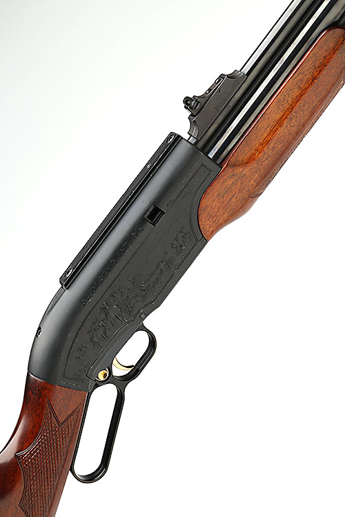AN FAC-RATED .25 PRE-CHARGED PNEUMATIC REPEATING AIR-RIFLE SIGNED SHIN-SUNG, MODEL 'CAREER II 707', serial no. 640164, recent, with 25in. barrel threaded for sound moderator, metallic grey receiver embossed with game-scenes in relief, in-line magazine, chequered walnut butt-stock and fore-end, lever action cocking and twin 'over-under' air reservoirs, untested