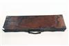 A BRASS-CORNERED OAK AND LEATHER SINGLE HAMMERGUN CASE,
