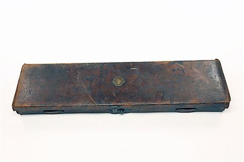 A LEATHER SINGLE GUNCASE, fitted for 30in. barrels, the interior lined with blue baize, (need attention)