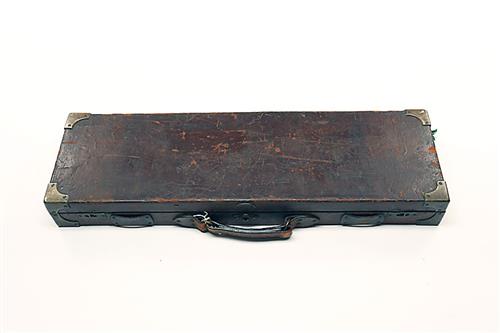 A BRASS-CORNERED OAK AND LEATHER-BOUND SINGLE GUNCASE,