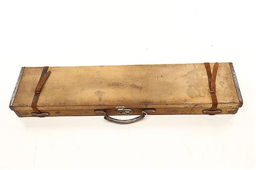 A CANVAS AND LEATHER SINGLE BIG-BORE GUNCASE, fitted for 33in. barrels, the interior lined with green baize, single lock (key missing)