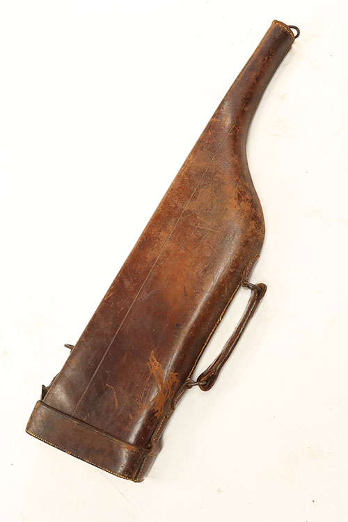 A LEATHER LEG-OF-MUTTON SINGLE GUNCASE, fitted for 30in. barrels, leather carry handle