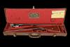22 3/8in. nitro barrel engraved 'JAMES WOODWARD & SONS. 64 ST. JAMES'S STREET. LONDON. S.W.', open sights and folding leaf sight, ramp-mounted bead fore-sight, matt top receiver ring engraved MADE IN AUSTRIA. PATENT. MANNLICHER SCHOENAUER M1903', and factory serial numbered 16819, detachable rotary box magazine, triggerguard serial numbered 6765, figured semi-pistolgrip stock with cheekpiece, the hand mounted with a flip-up peep sight, quickly-detachable pistolgrip-cap with sight compartment, sling swivels, 14 1/2in. pull including 3/4in. rubber recoil pad, weight 6lb. 15oz., in a brass-cornered fitted take-down leather case with take-down instruction label and a William Evans trade label