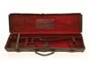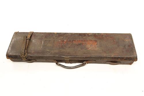 AN ARMY & NAVY LEATHER SINGLE HAMMERGUN CASE, fitted for 30in. barrels, the interior lined with red baize, a leather gold-tooled Army & Navy trade label, brass lock (key missing)