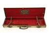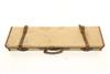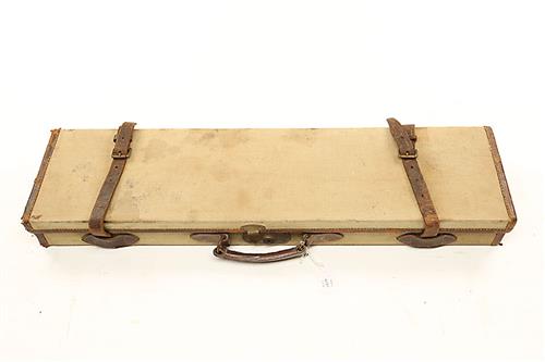 A WILLIAM EVANS CANVAS AND LEATHER SINGLE GUNCASE, fitted for 31in. barrels, the interior lined with red baize, boxing needs attention, brass lock (key missing),