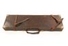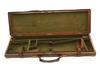A BRASS-CORNERED OAK AND LEATHER SINGLE GUNCASE,