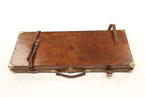 A BRASS-CORNERED OAK AND LEATHER-BOUND DOUBLE GUNCASE,