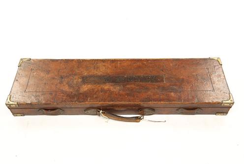 A JOSEPH LANG & SON OAK AND LEATHER SINGLE GUNCASE,